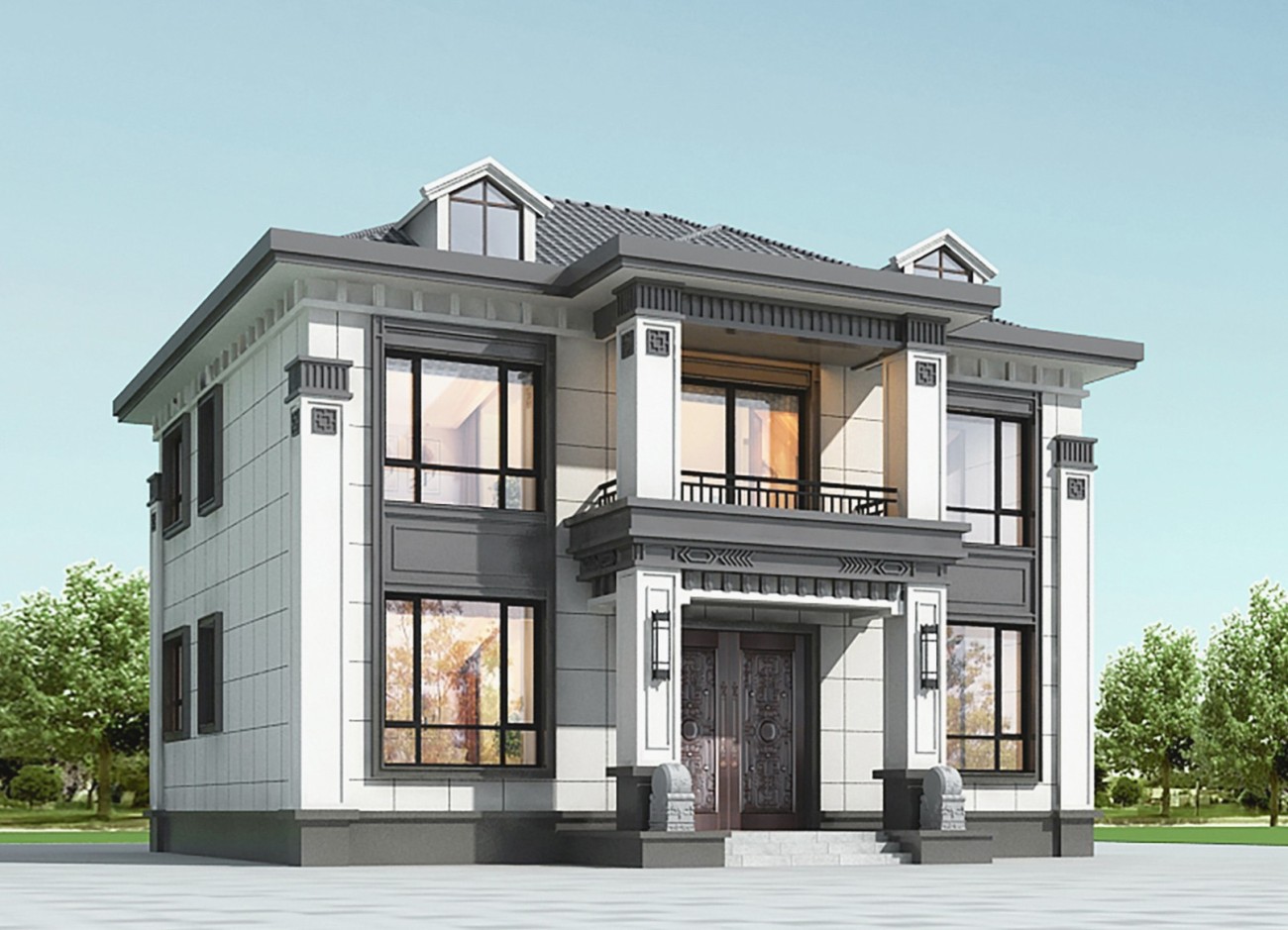 日照011 两层新中式(15.43x12.66米)-【易设计】