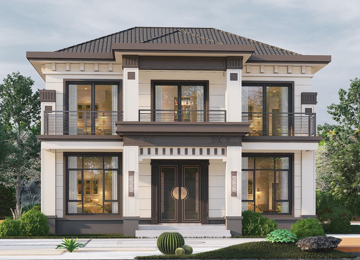 日照009 两层新中式(11.45x14.76米)-【易设计】