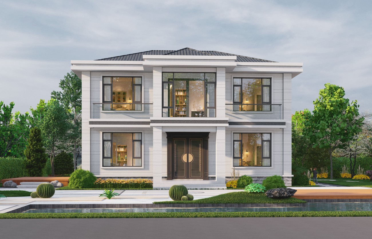 日照017 二层新中式(9.6x17.4米)-【易设计】